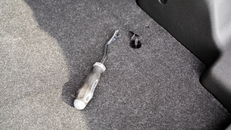 後列の座面は、シートを車体から外して取り付けるため、まずは荷室からラゲッジのシートを外します。