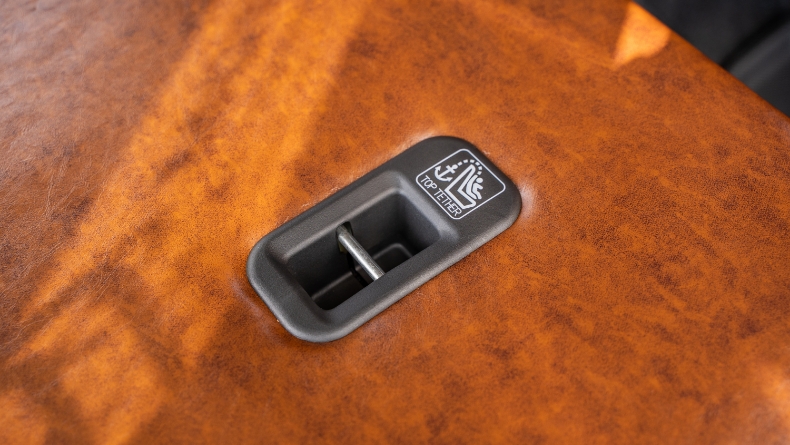 シート背面のチャイルドシート固定用アンカーのカバーの入れ込みを行います。