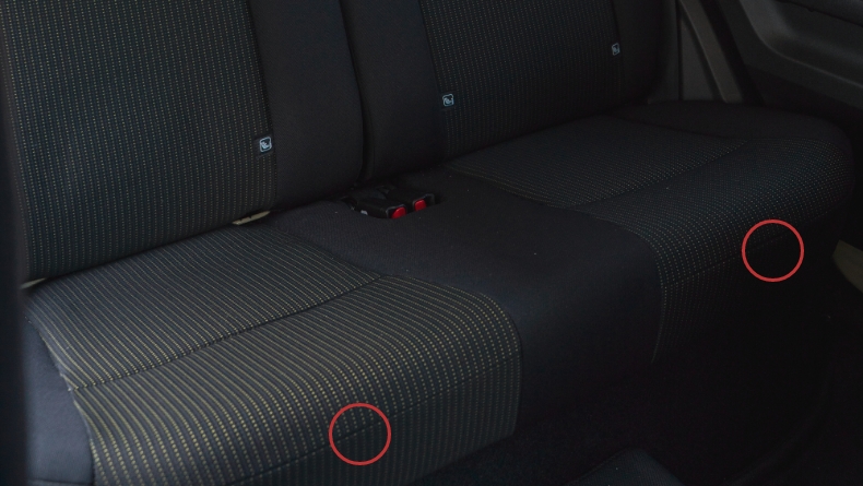 背もたれカバーの作業が完了したら、後部座席の座面を車体に戻します。